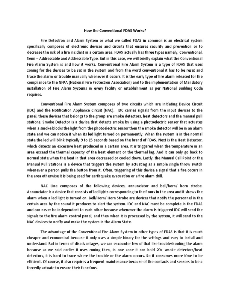 decrease the risk of a fire incident in a certain area. FDAS actually has three types namely, Conventional,