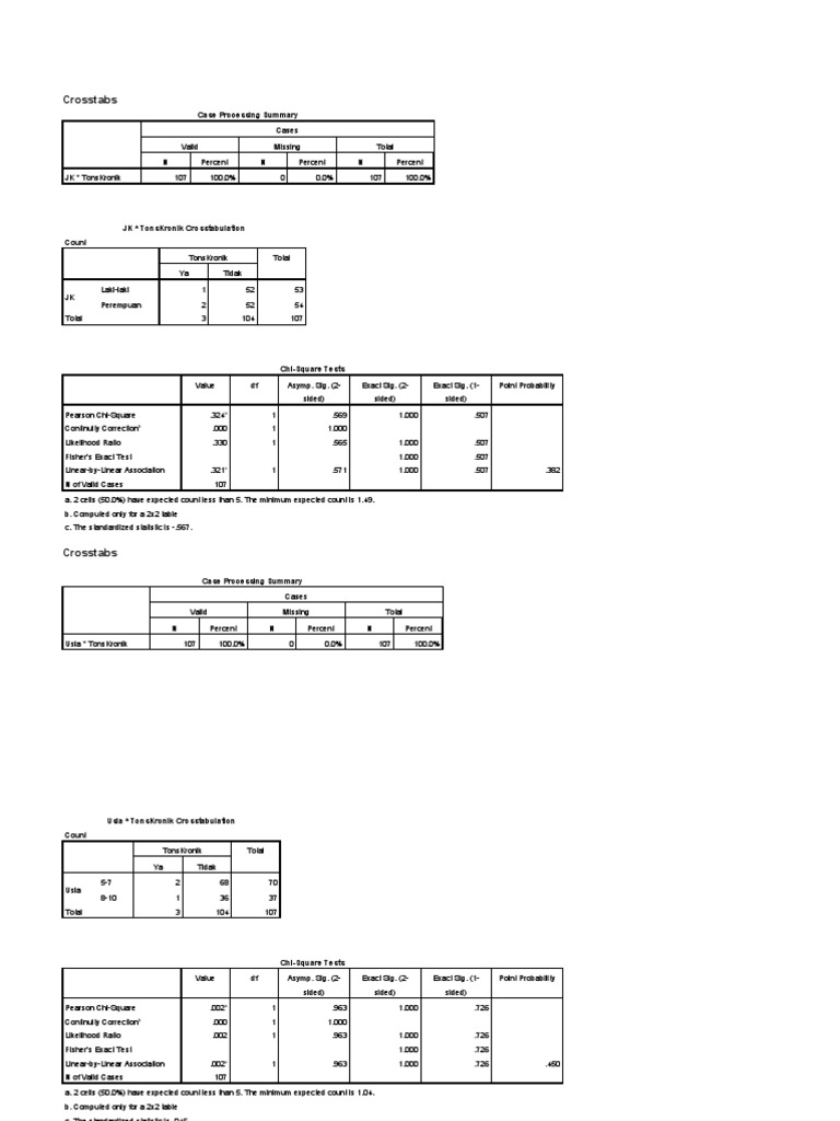 Usia * TonsKronik 107 100.0% 0 0.0% 107 100.0%