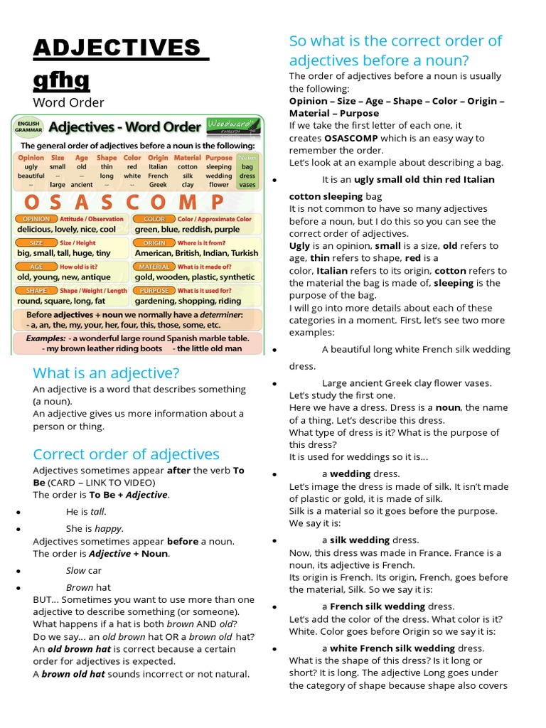 gfhg The order of adjectives before a noun is usually