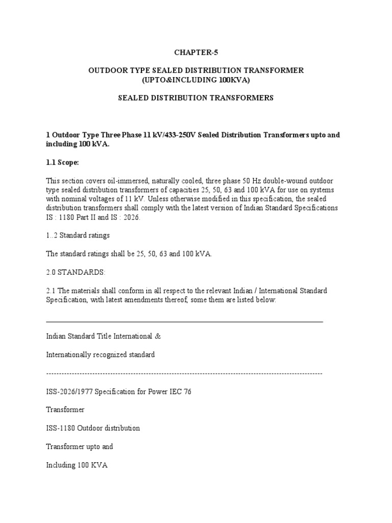 This section covers oil-immersed, naturally cooled, three phase 50 Hz double-wound outdoor