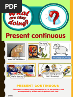 + verb to be (am, is, are) + verb in ing + complement + was/were + verb in ing + complement