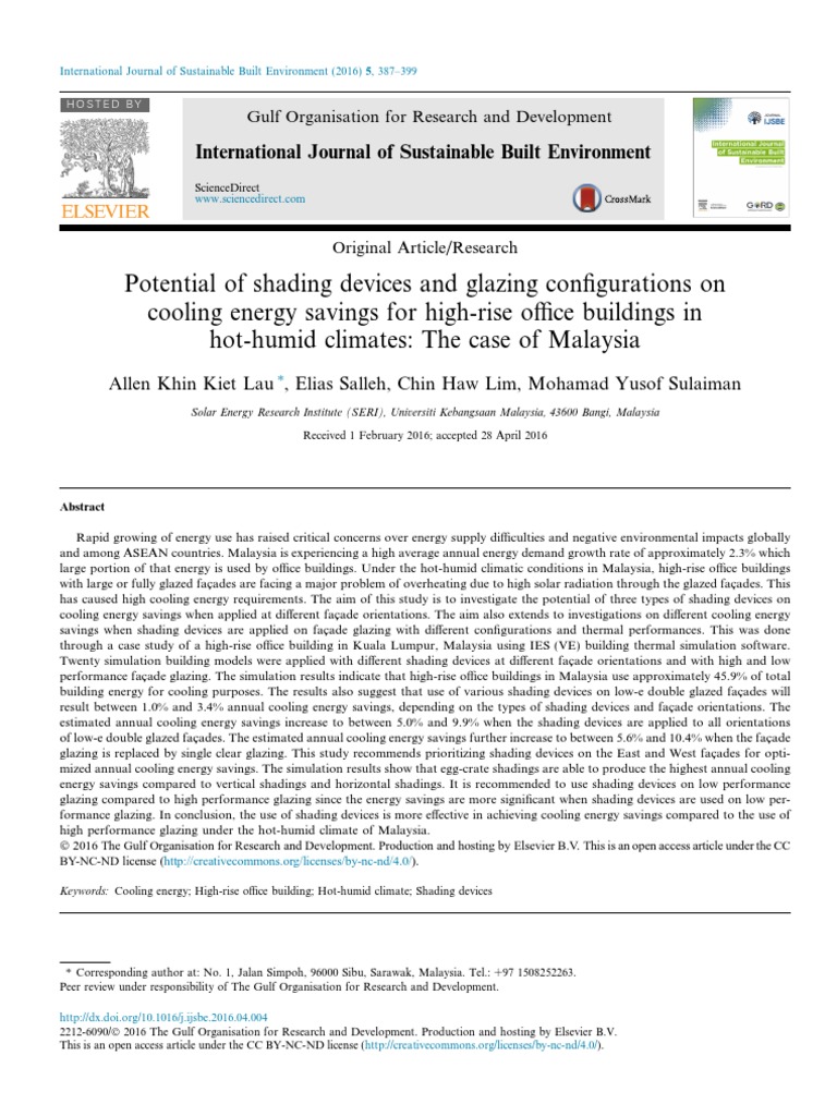 Keywords: Cooling energy; High-rise office building; Hot-humid climate; Shading devices