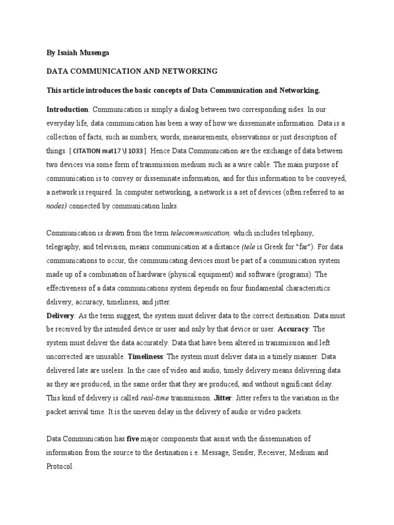 things. [ CITATION mat17 \l 1033 ]. Hence Data Communication are the exchange of data between