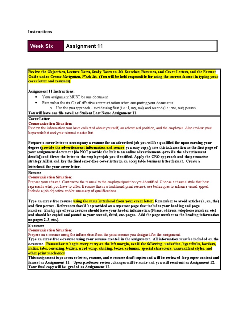 This assignment is your cover letter, resume, and e-resume draft copies and will be reviewed for proper content and