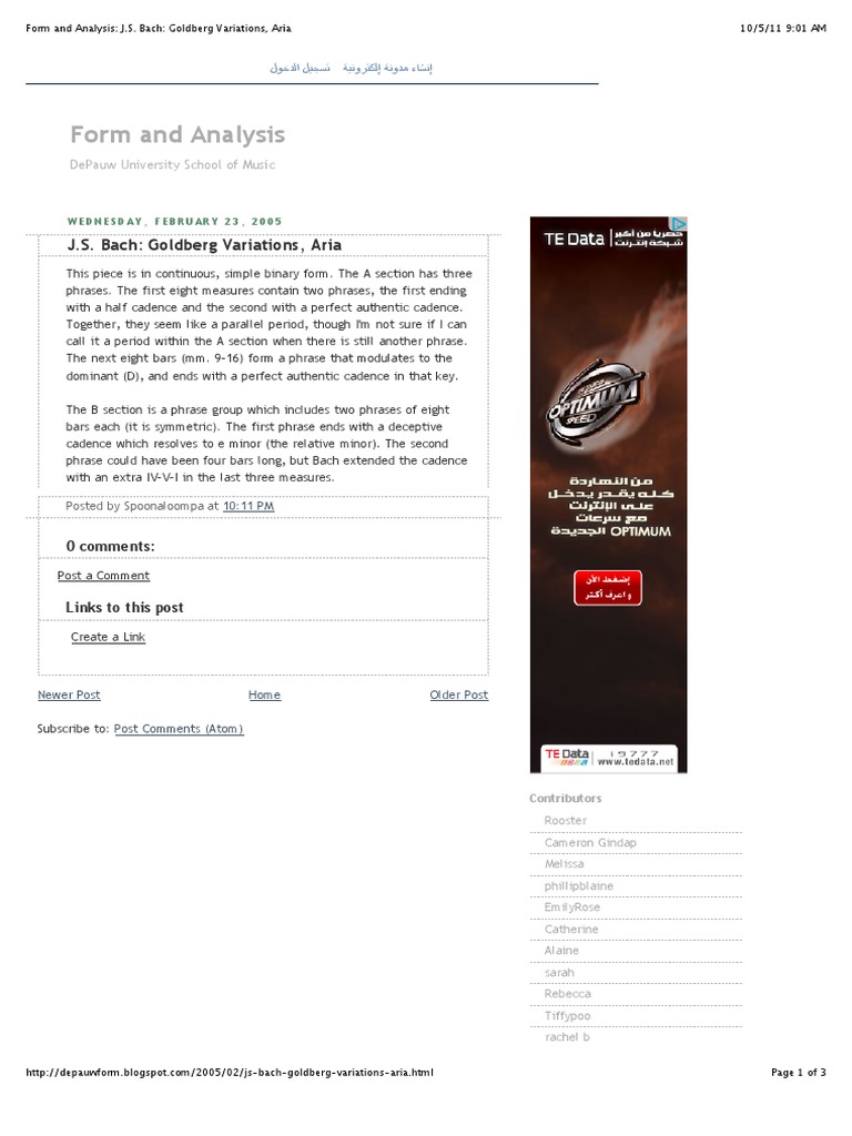 Form and Analysis: J.S. Bach: Goldberg Variations, Aria 10/5/11 9:01 AM