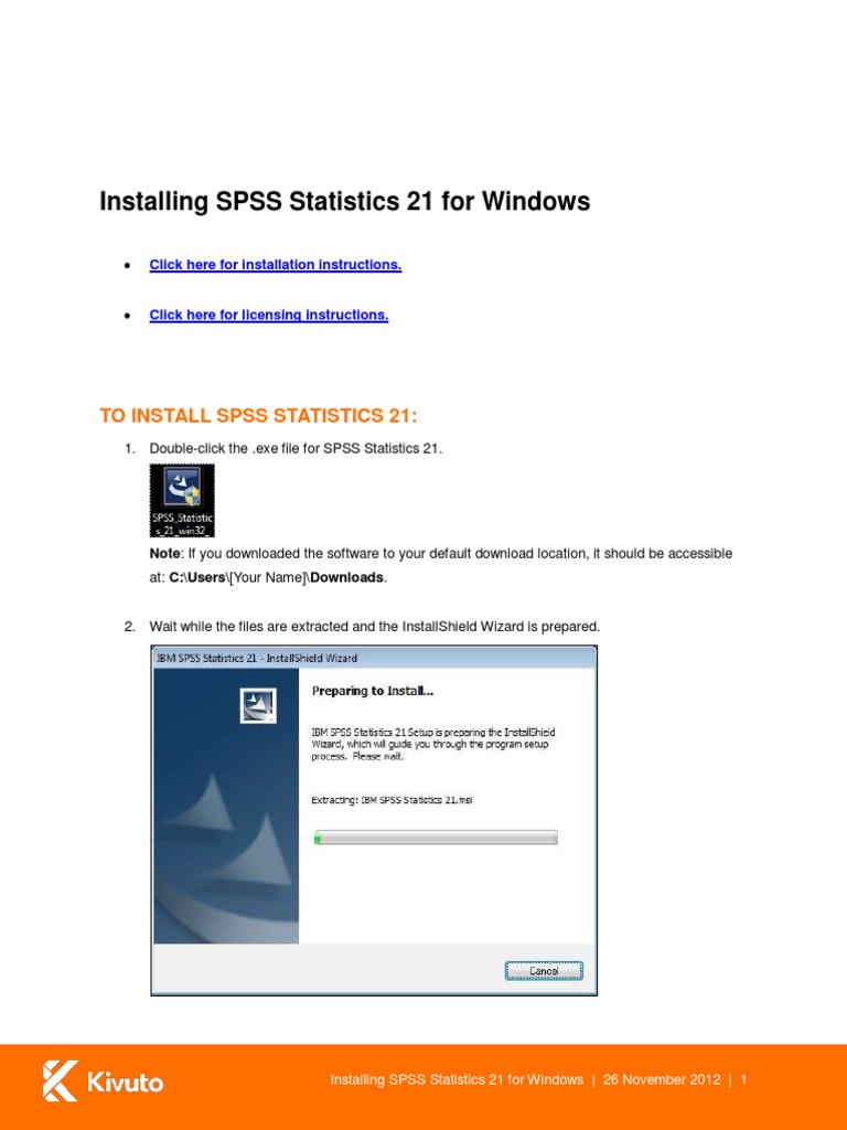 Installing SPSS Statistics 21 for Windows | 26 November 2012 | 2