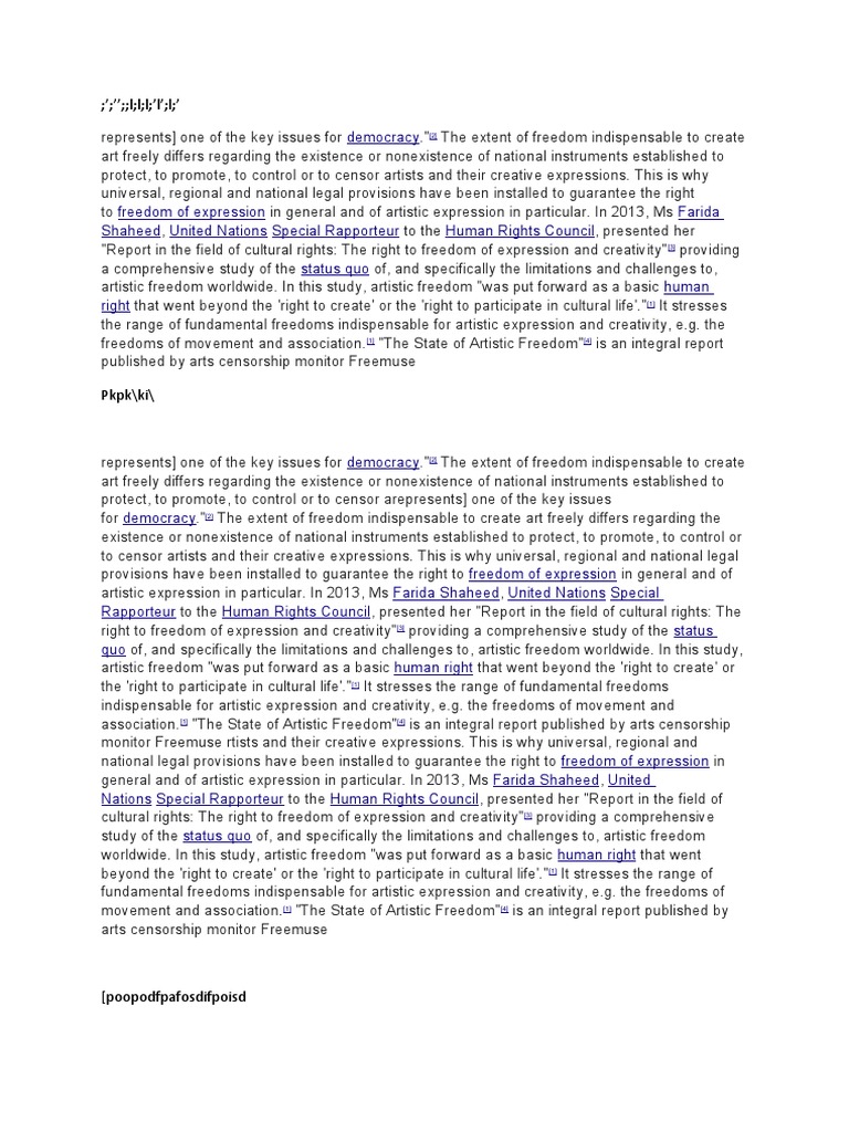 artistic expression in particular. In 2013, Ms Farida Shaheed, United Nations Special
