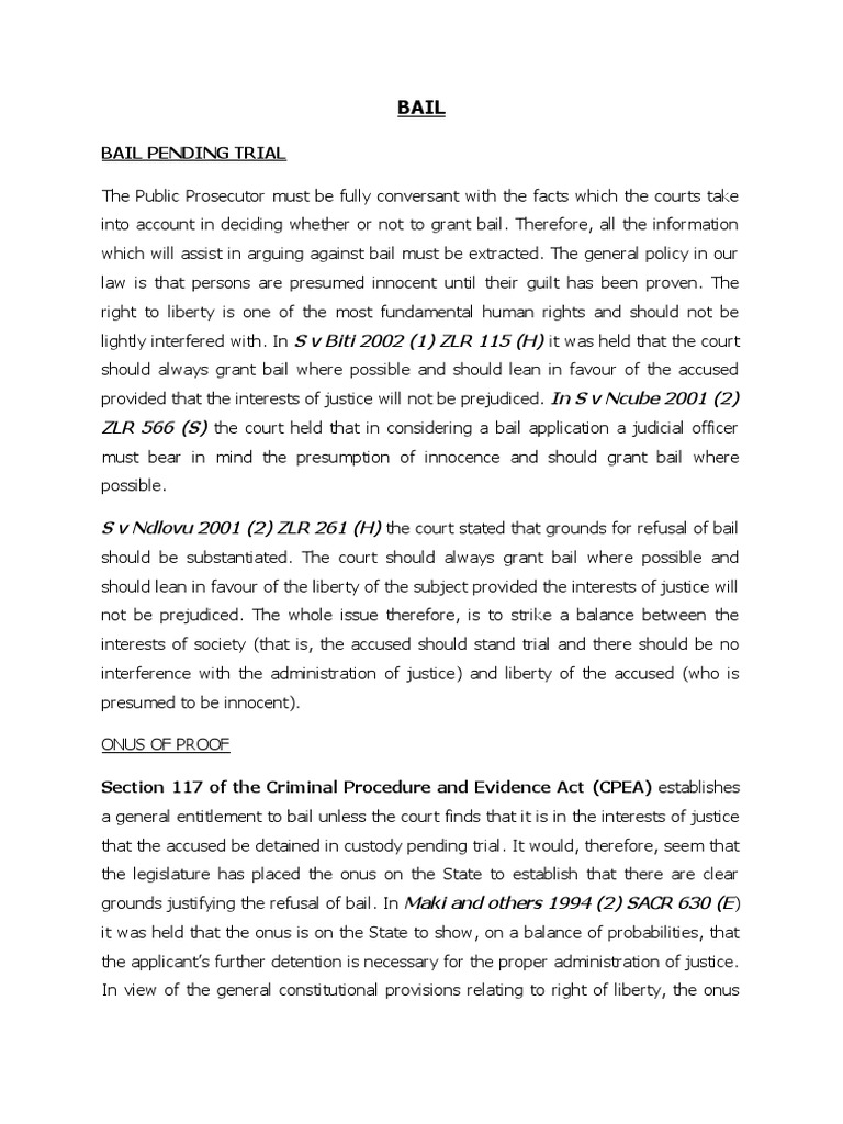 In S v Ncube and another 2002 (2) ZLR 524 the court held that bail