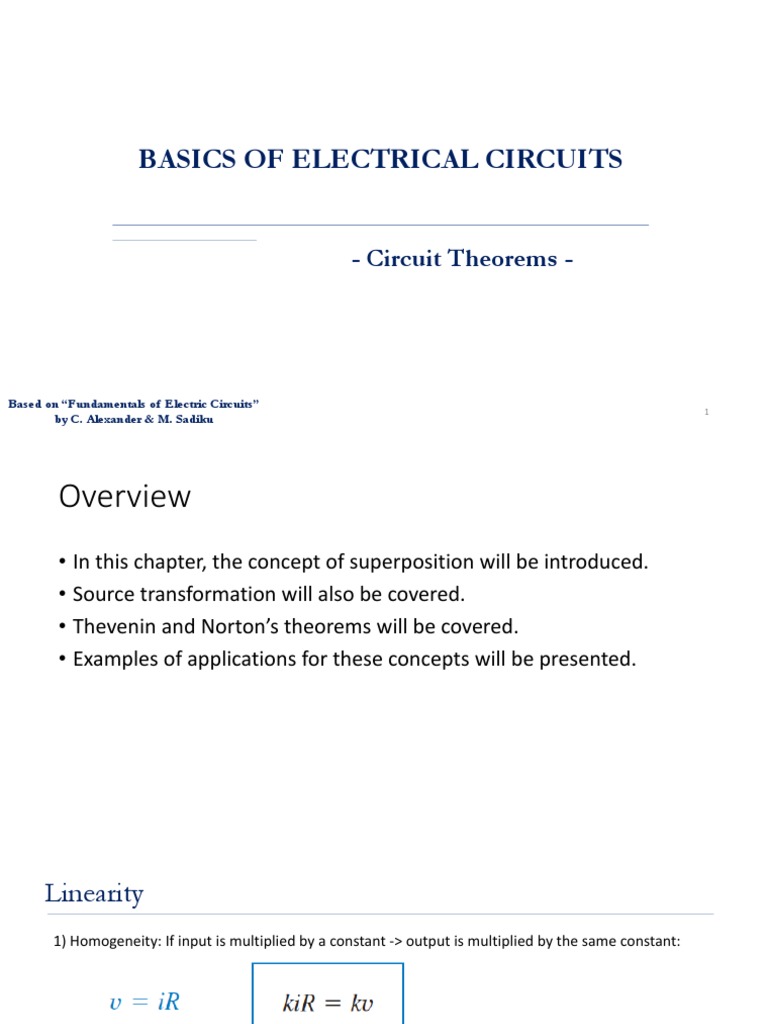 A resistor is linear, because the voltage-current relationship satisfies both homogenetiy and