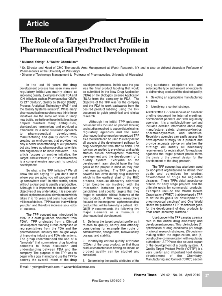 pharmaceutical researchers may think these document to guide preclinical and clinical A well-written TPP can serve as an excellent
