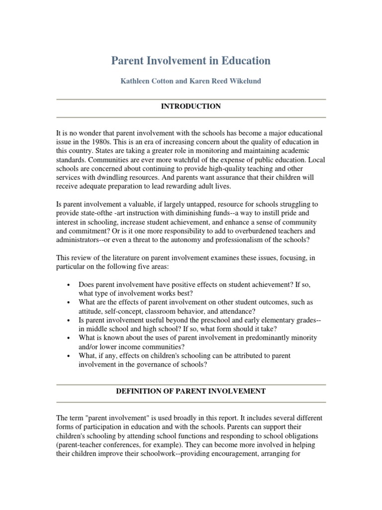 Is parent involvement a valuable, if largely untapped, resource for schools struggling to