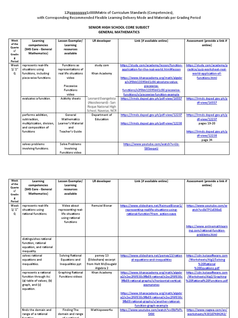12tggggggggg1z888Matrix of Curriculum Standards (Competencies),