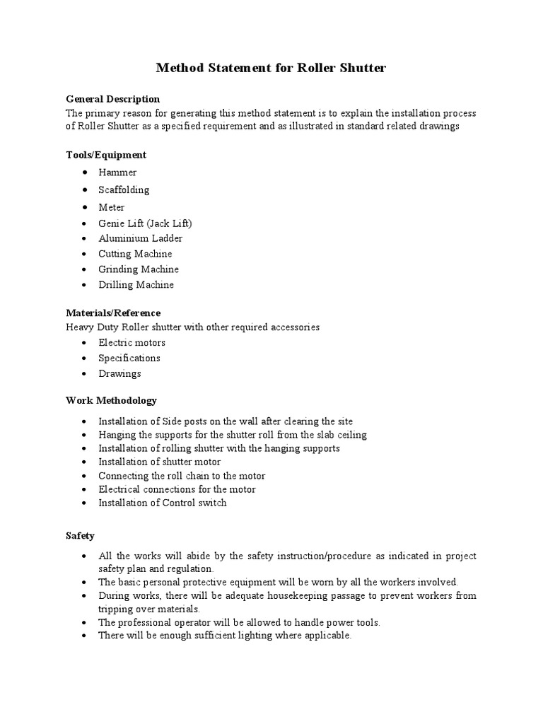 Method Statement for Roller Shutter