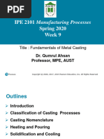 The preferred material for this mould would be Brass, and the value for the mould constant in the Chvorinov’s