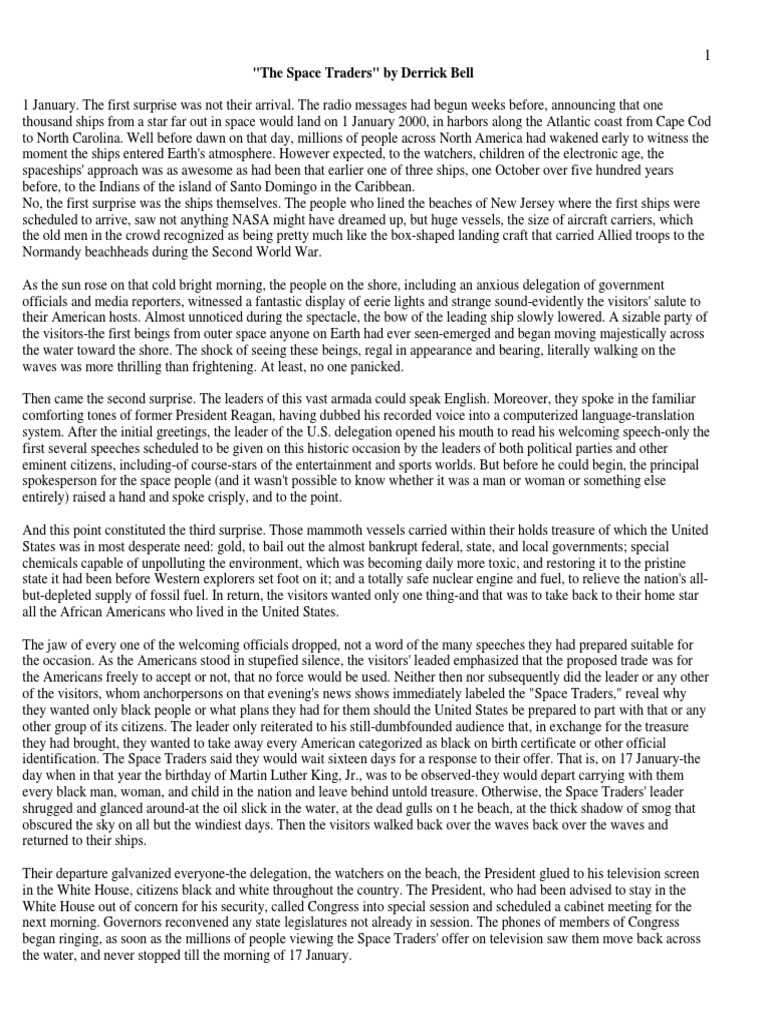 blacks. In rejecting the offer, the Space Traders warned that they would withdraw their proposition unless the United States