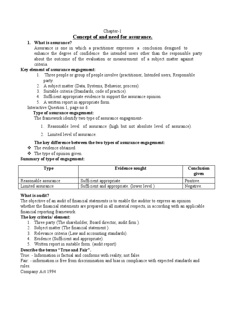 1. Reasonable level of assurance (high but not absolute level of assurance).