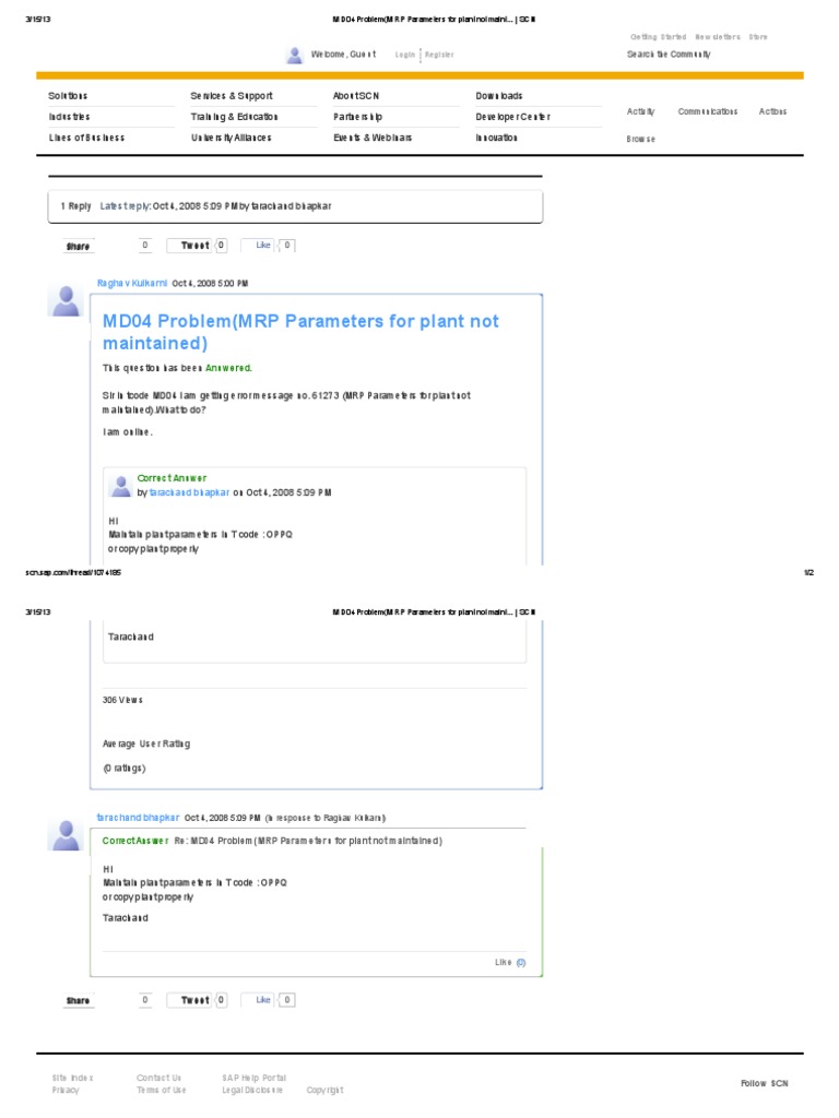 3/15/13 MD04 Problem(MRP Parameters for plant not maint... | SCN