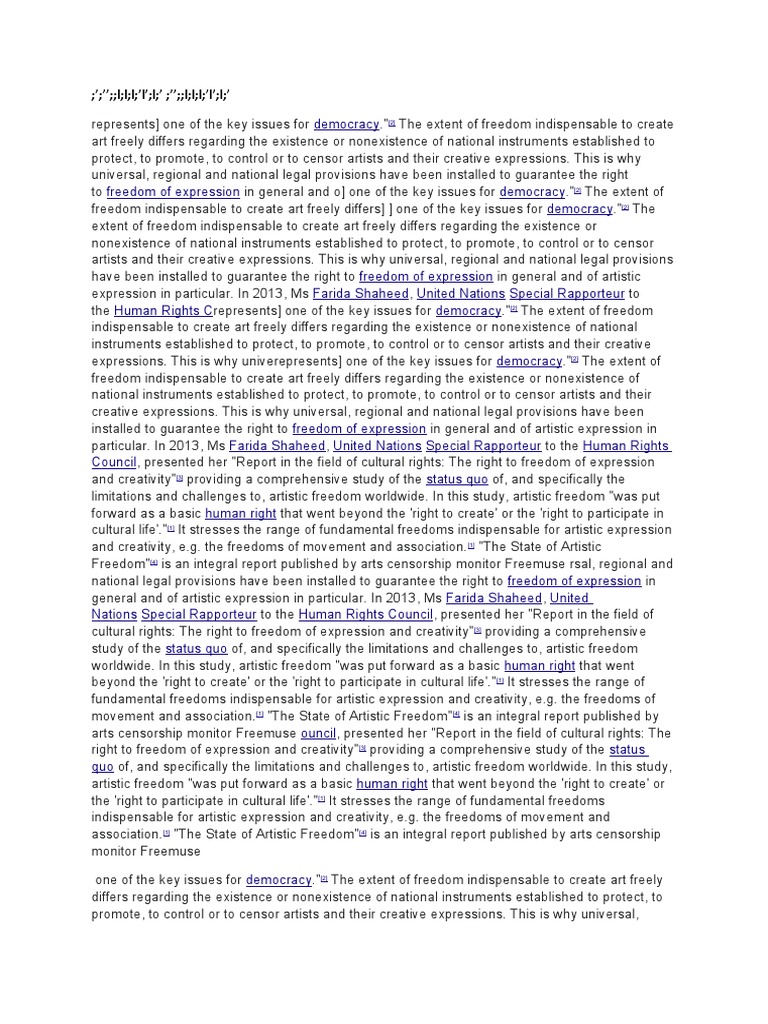 artistic expression in particular. In 2013, Ms Farida Shaheed, United Nations Special
