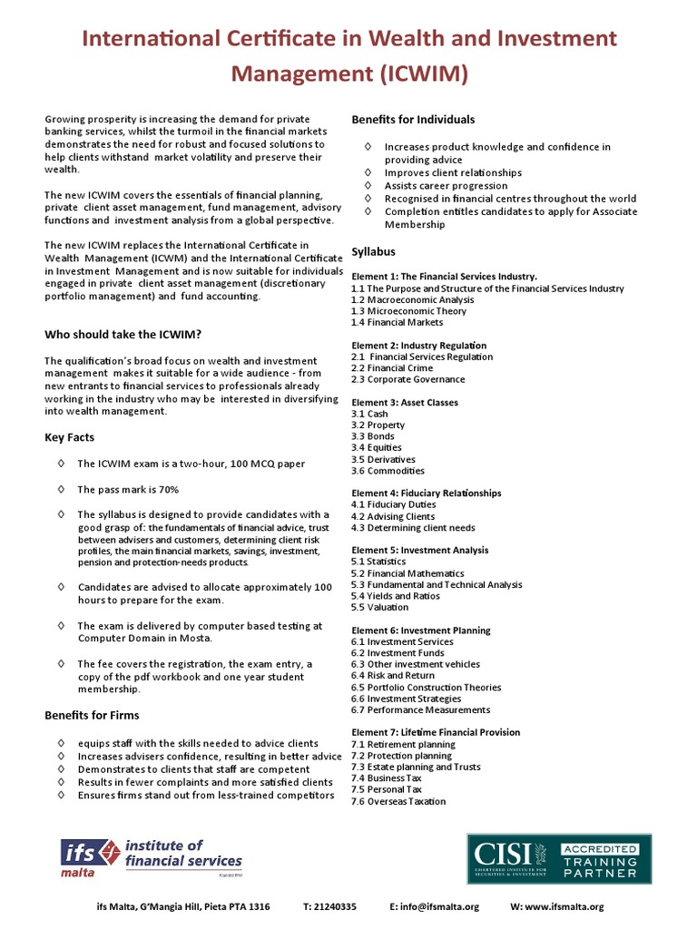 The new ICWIM covers the essentials of financial planning, Recognised in financial centres throughout the world