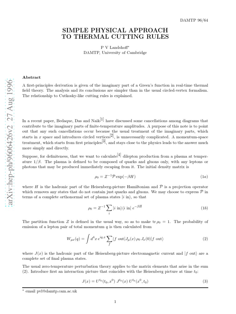 Suppose, for definiteness, that we want to calculate[4] dilepton production from a plasma at temper-