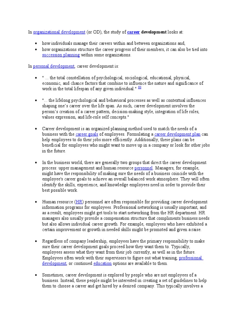 to help you in your career. Career development is an ongoing, lifelong process to help you learn