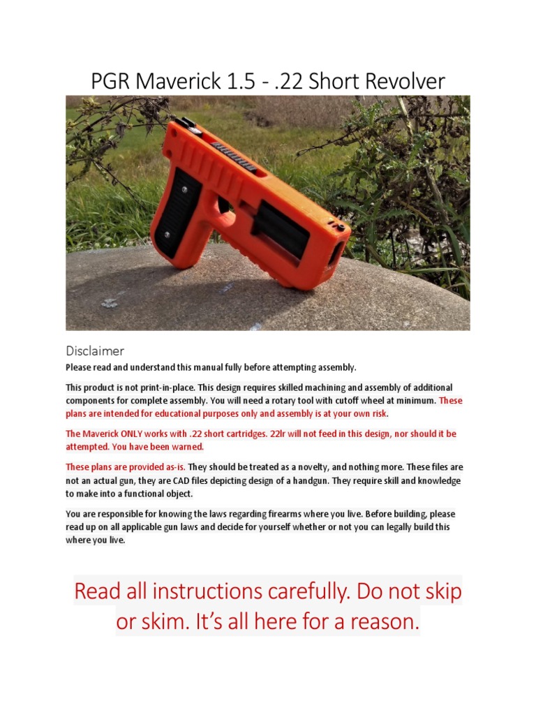 The PGR Maverick is a CAD representation depicting theoretical design of a handgun. These plans are