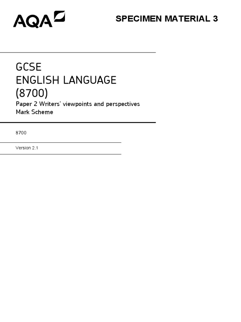 2 MARK SCHEME – GCSE ENGLISH LANGUAGE – PAPER 2