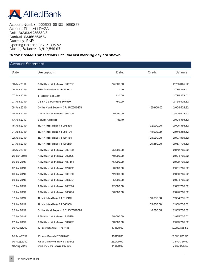 25 Jul 2019 Online Cash Deposit CR. PK0010093 16,000.00 2,955,735.52