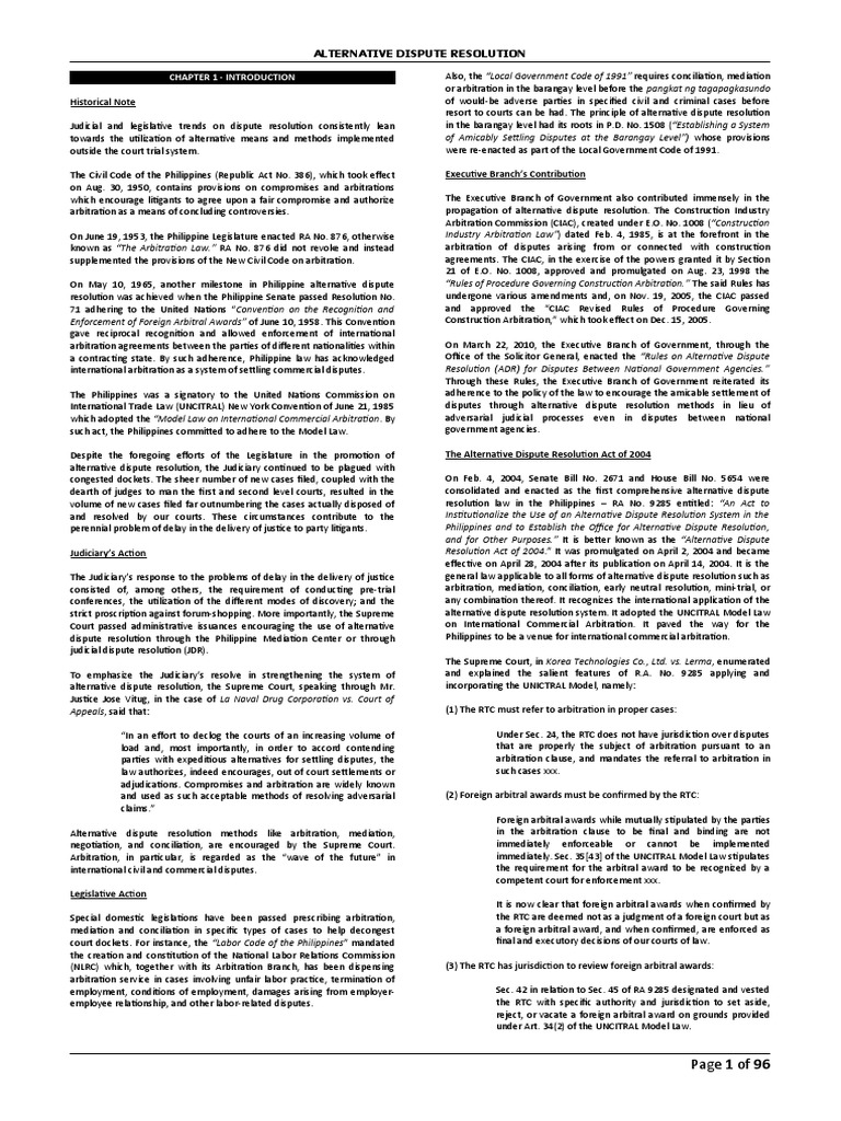strict proscription against forum-shopping. More importantly, the Supreme alternative dispute resolution system. It adopted the UNCITRAL Model Law