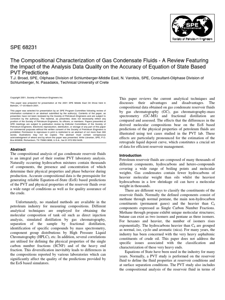 SPE 68231 OF THE ANALYSIS DATA QUALITY ON THE ACCURACY OF EQUATION OF STATE BASED PVT PREDICTIONS 3