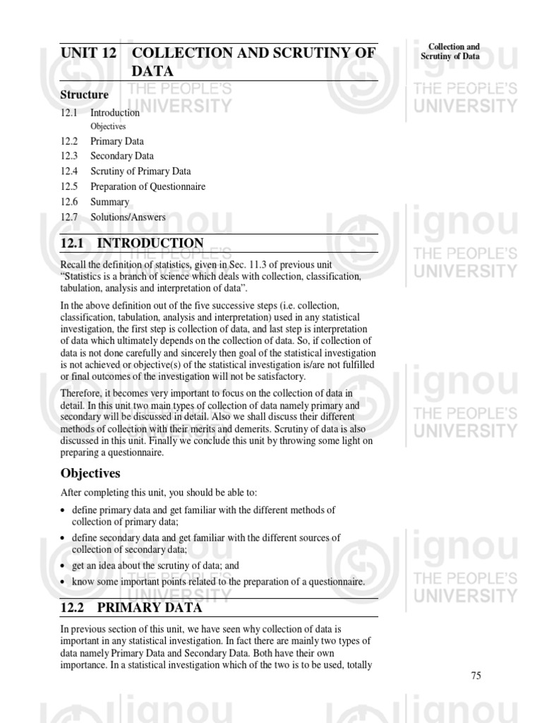 detail. In this unit two main types of collection of data namely primary and