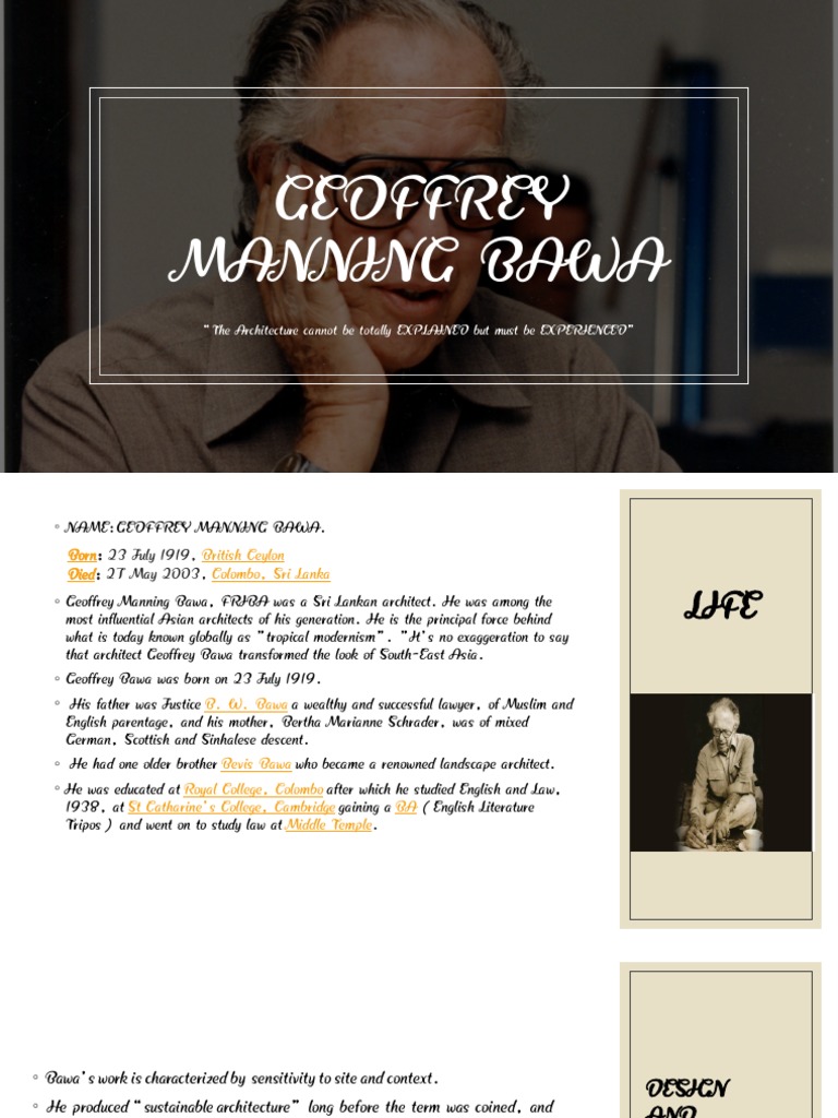 ◦ Geoffrey Manning Bawa, FRIBA was a Sri Lankan architect. He was among the