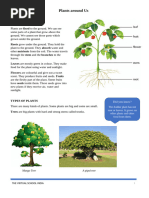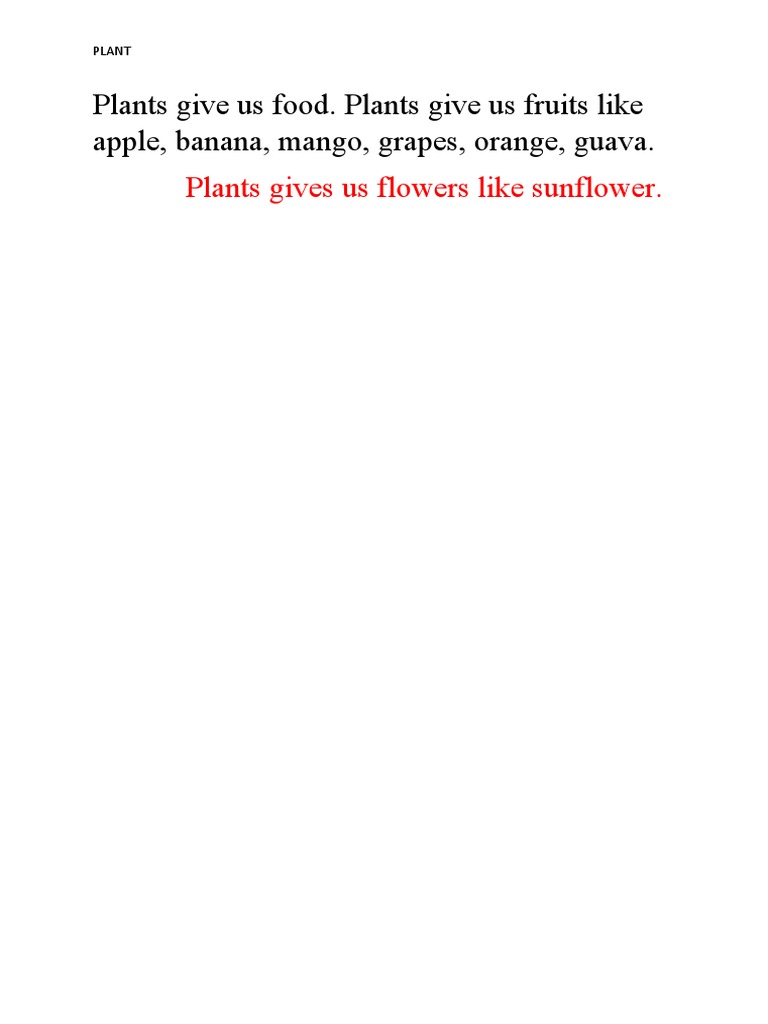 Plants provide humans with food and fruits such as apples, bananas, mangoes, grapes, oranges, and guavas. They also give us flowers, for example sunflowers.