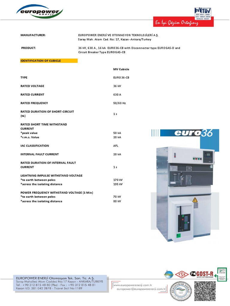 MANUFACTURER: EUROPOWER ENERJİ VE OTOMASYON TEKNOLOJİLERİ A.Ş.