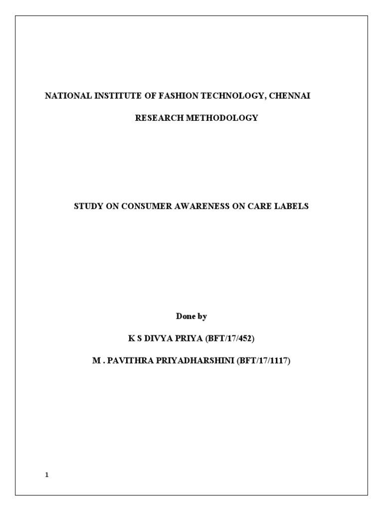 consumer awareness on care labels” in partial fulfillment of requirement for the completion of