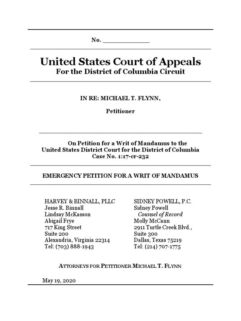 For these reasons, Petitioner respectfully requests a Writ of Mandamus