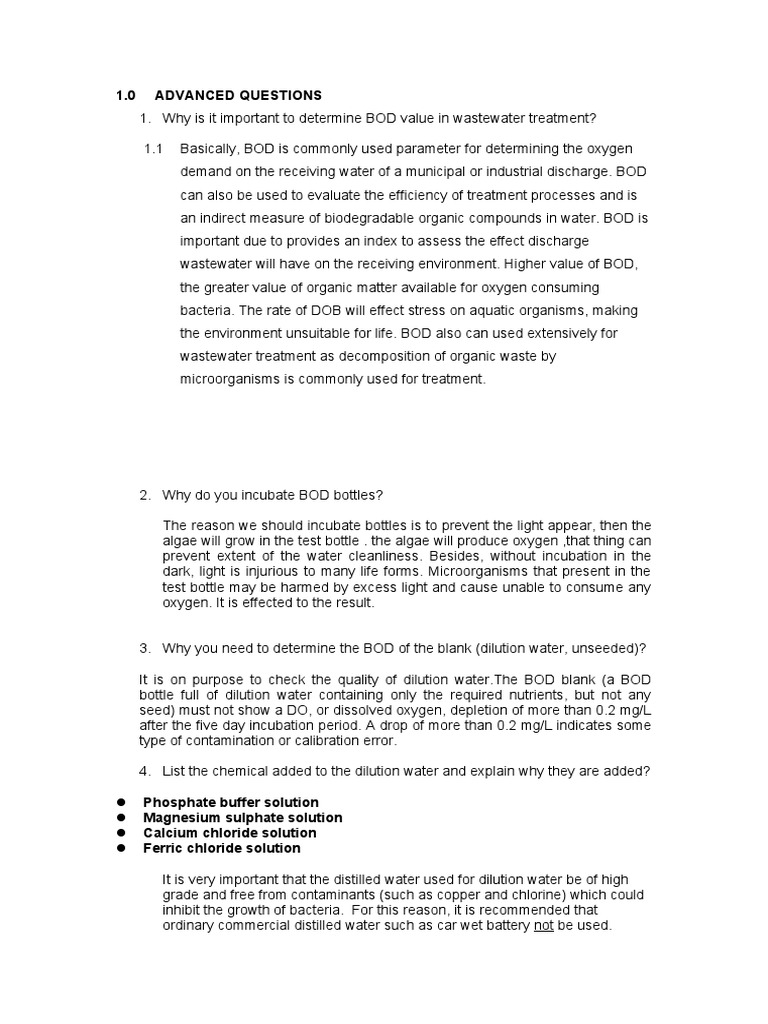 3. Why you need to determine the BOD of the blank (dilution water, unseeded)?