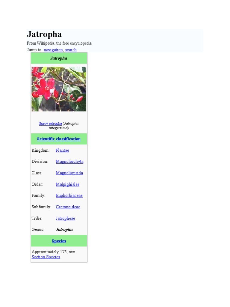 • Jatropha fuel crop – Concepts, sources, bio diversity and potential as renewable energy