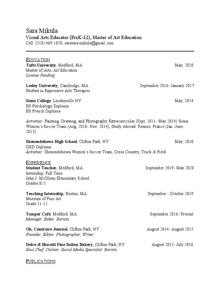 Activities: Painting, Drawing, and Photography Extracurricular (Sept. 2011- May 2014) Siena