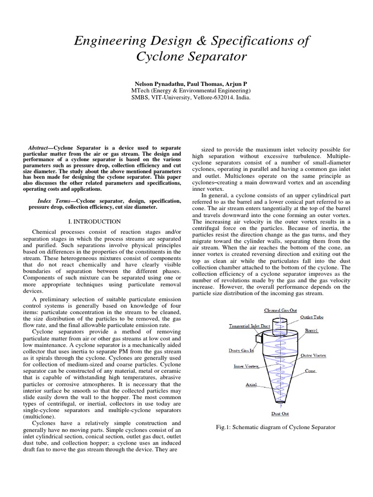 has been made for designing the cyclone separator. This paper and outlet. Multiclones operate on the same principle as