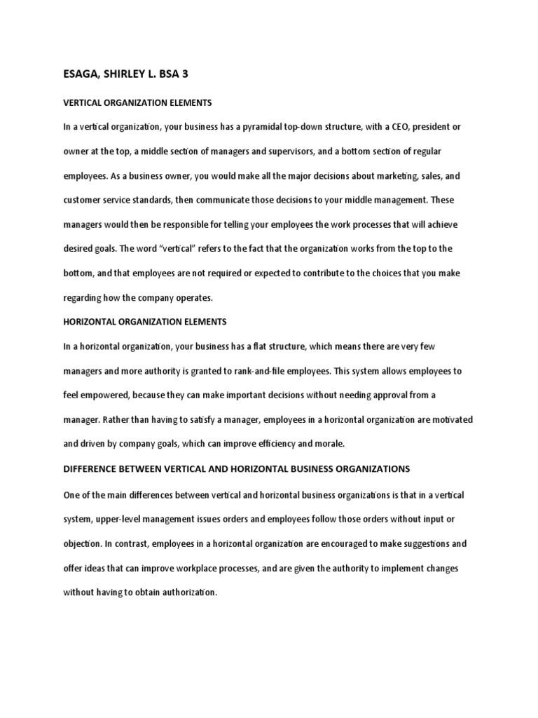 desired goals. The word “vertical” refers to the fact that the organization works from the top to the