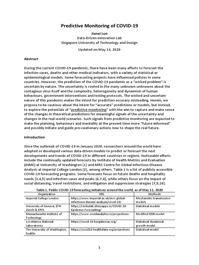 Table 1. Public COVID-19 forecasting initiatives around the world, as of May 11, 2020