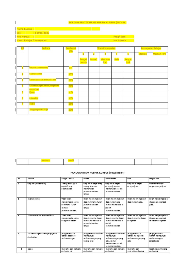 BORANG PENTAKSIRAN RUBRIK KURSUS (PROJEK)