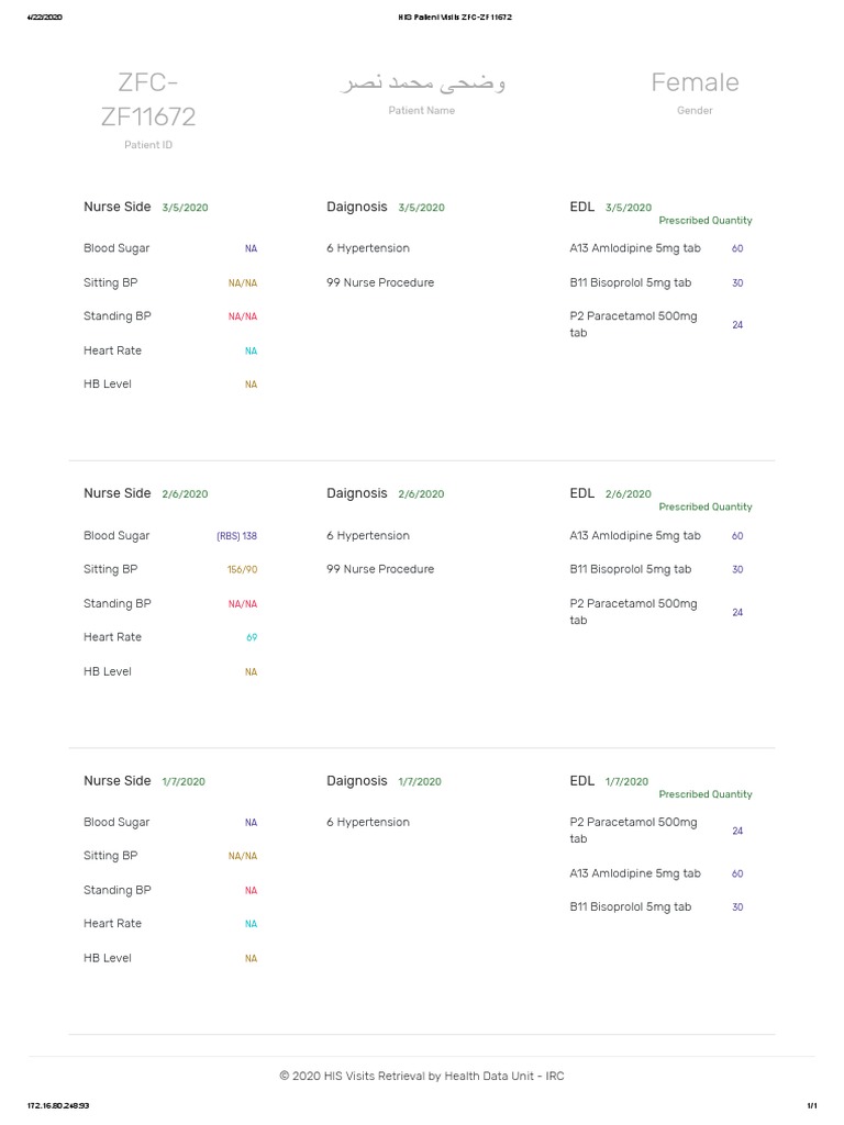 4/22/2020 HIS Patient Visits ZFC-ZF11672