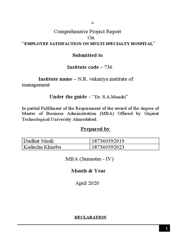 Hence, I have selected Multispecialty Hospital of being aware about practical knowledge.