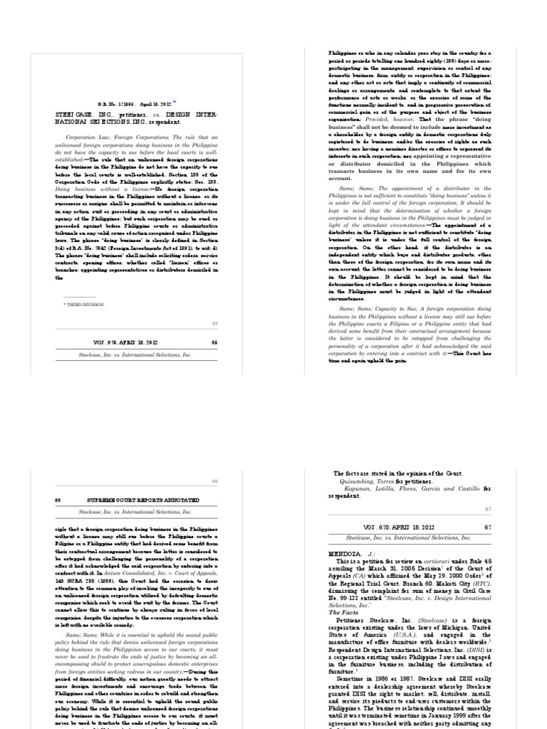 sue in the Philippines despite the fact that it (Steelcase) requisite license to do so. Its determination was further