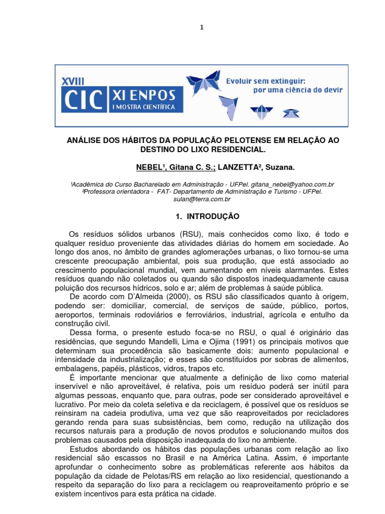 Neste sentido, o presente estudo teve por objetivo principal avaliar o destino do