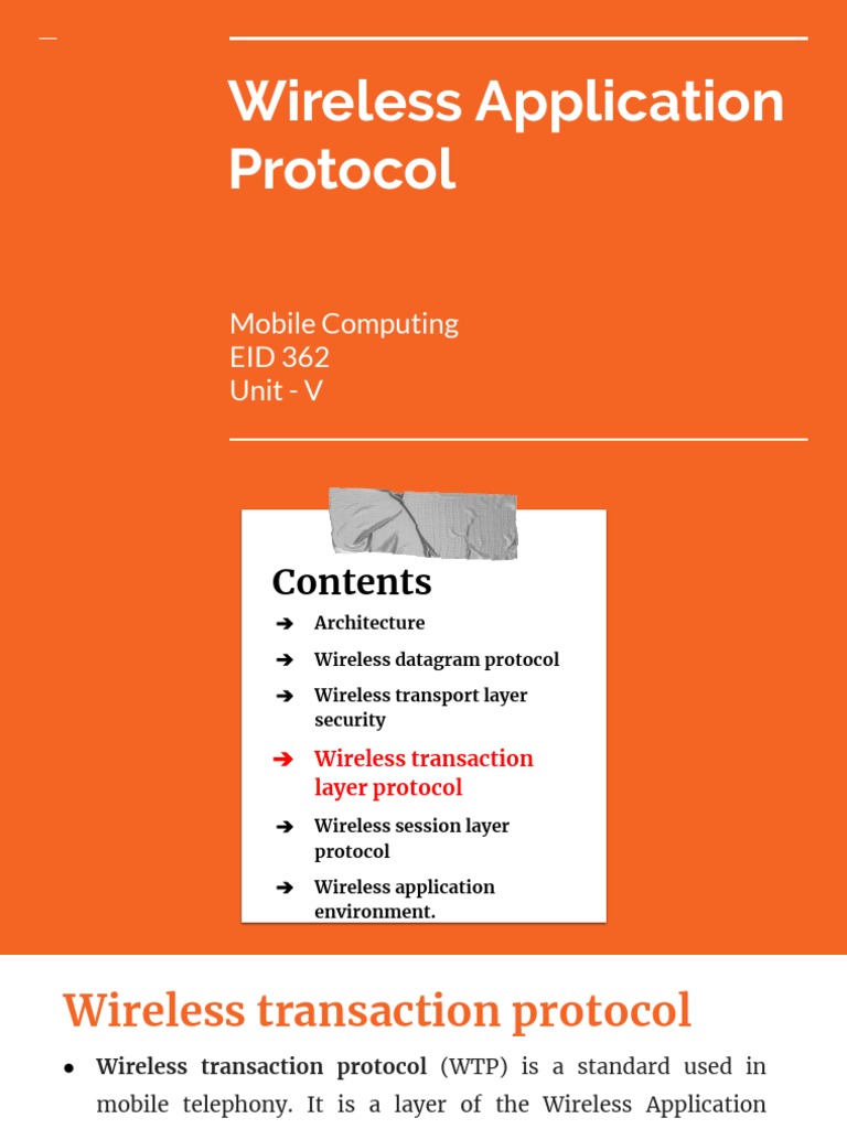 ● Wireless transaction protocol (WTP) is a standard used in