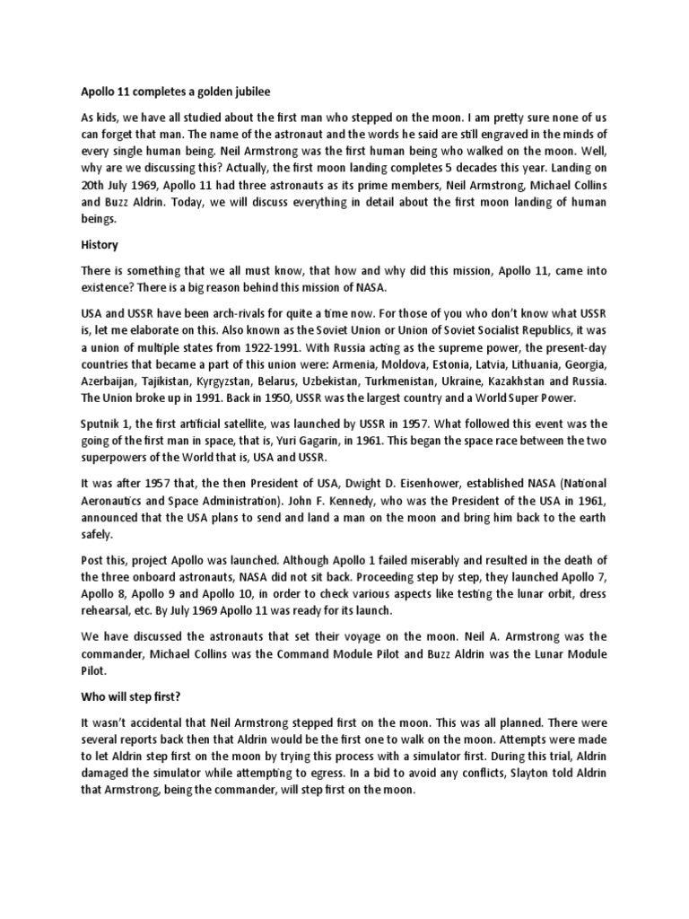 There is something that we all must know, that how and why did this mission, Apollo 11, came into