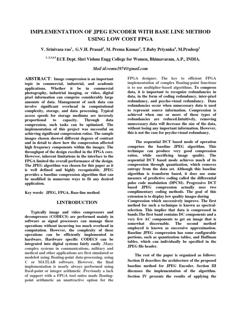 implementation is nearly always performed using baseline method for JPEG Encoder. Section III